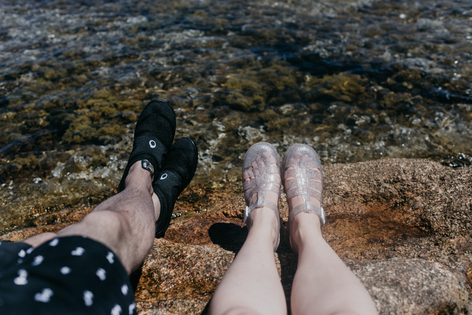 The Jelly shoes are the perfect ones for this type of rocky beaches. Dani got this aqua shoes from Decathlon.