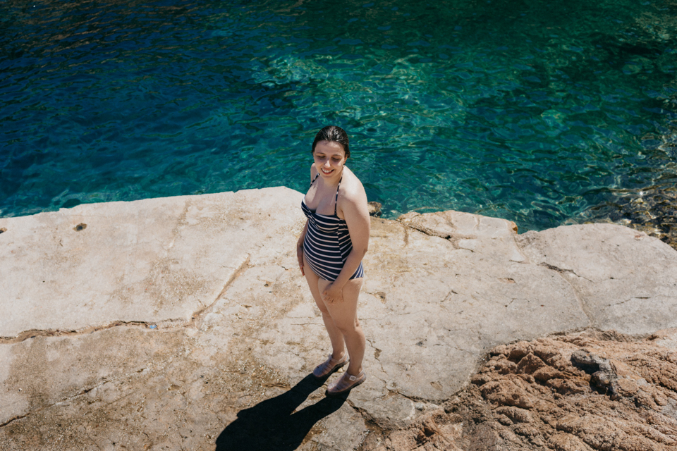 I can relate about not feeling super comfy while wearing swimsuits & specially bikins. I find vintage style more way comfortable, specially for the later. I usually prefer to only dip my feet too, but these waters where so super clean that felt like having a big beautiful swimming pool ;) I was happy with our rare change of plans for a day.